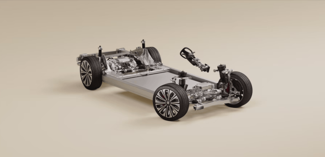 这些体验得益于蔚来最新的底盘技术:SkyRide·天行智能底盘系统。这个系统主要是三部分,线控转向、后轮转向和全主动悬架。