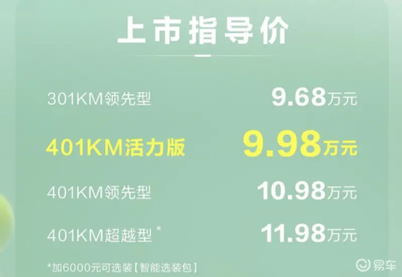 作为比照,现款入门车型为301公里版别,价格9.68万。也就是说只需多300千元,新车续航就增加了不少,新车搭载45.12千瓦时电池包。此外,新车还推出丰厚的购车权益,概况见下图。